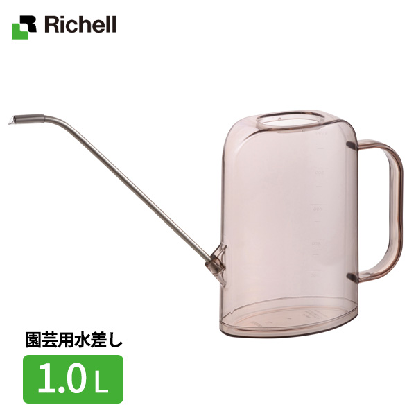 リッチェル 水差し グレース レクタングルピッチャー 1L ブラウン 1-70327 | じょうろ ピッチャー ジョウロ 観葉植物 ベランダ菜園 ガーデニング 水やり 薄型