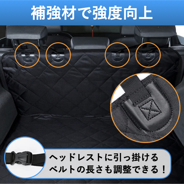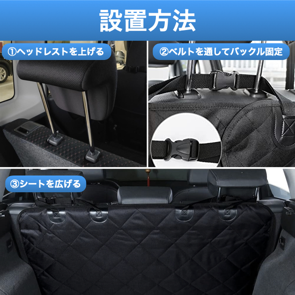 調整可能な紐を後部座席のヘッドレストに引っ掛けることでシートを敷くことができます。