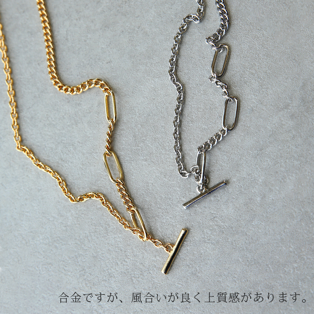 長さが変えられる、ゴツくない。チェーン ネックレス マンテルチェーン ニュアンス マンテルバー シルバーアクセサリー レディース アクセサリー アクセ gold silver ゴールド シルバー 大きい きれいめ ジュエリー 女性 金 銀 ギフト 冬 秋 秋新作
