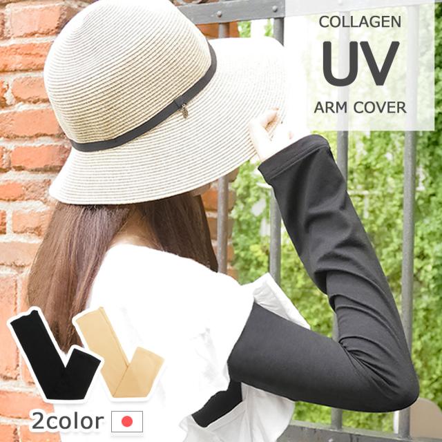 【4枚までメール便送料無料】アームカバー UV 日よけ UVカット UV対策 紫外線 保湿 消臭 冷感 伸縮性 ロング コラーゲン フィラゲン ひんやり 涼しい 日本製 新内外綿 通勤 通学 お出かけ スポーツ 運転 ガーデニング 家庭菜園 黒 ベージュ