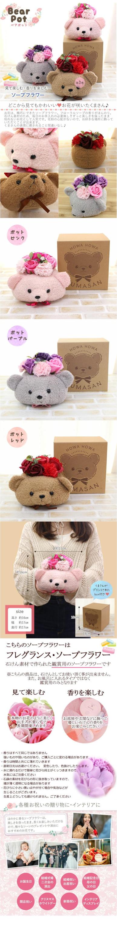 ≪シャボンフラワー ベアポット≫ 誕生日プレゼント 母の日 ソープフラワー ブーケ 花束 ギフト プレゼント 記念日 サプライズ