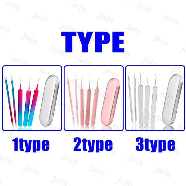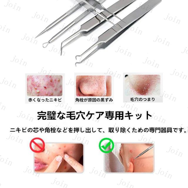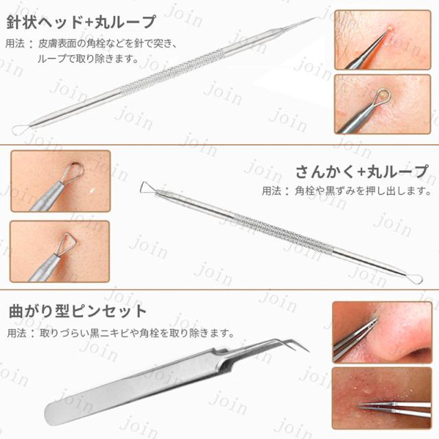 ●毛穴の角栓や、鼻周りの黒ずみ、黒ニキビ、白ニキビのケアに最適なプロ仕様のツール5本セットです。