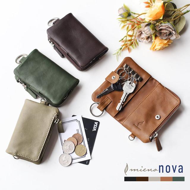 キーケース 小銭入れ付き レディース 本革 牛革 レザー ブランド mieno nova【名入れ 可能】【ネコポスで送料無料】革 女性 男性 プレゼント ギフト 小物 革小物 男女兼用 ユニセックス ミーノ ノヴァ リアルレザー 柔らかい かわいい(07000484r)