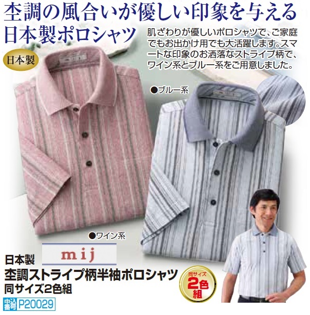 ポロシャツ 半袖 メンズ シニア 春夏 日本製 杢調ストライプ柄半袖ポロシャツ 2色組 半袖シャツ 紳士服 カジュアルシャツ ワインレッド系 ブルー系 サマーシャツ シニアファッション 40代 50代 60代 70代 80代 父の日 お父さん 春物 夏物 ギフト プレゼント p20029