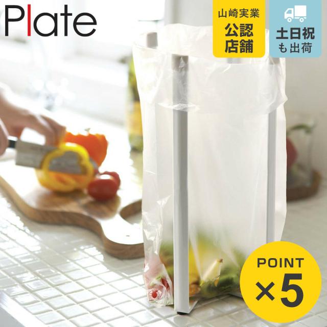 山崎実業 Plate キッチンエコスタンド プレート ( ポリ袋ホルダー ゴミ箱 ごみ箱 卓上スタンド ゴミ袋スタンド 三角コーナー スタンド エコホルダー 水切り 水筒 乾燥 エコスタンド ポリ袋スタンド キッチンスタンド ダストBOX )