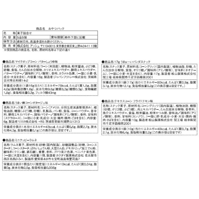 ◆お子様の大好きなお菓子が1袋に5種類入っています。