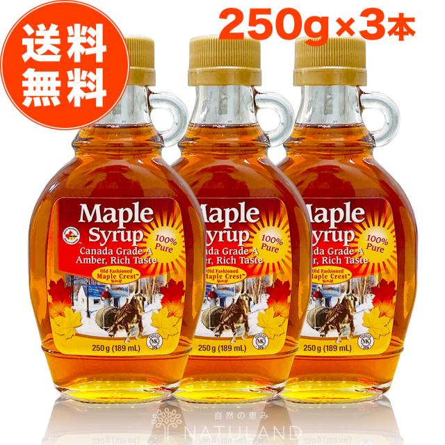 メープルシロップ 250g 189ml 3本セット 朝日 ケース 純度100% メープル シロップ カナダ アンバー グレードa アンバーリッチテイスト グレードaアンバー 無添加 ジャム 瓶 おすすめ メーカー ランキング 送料無料