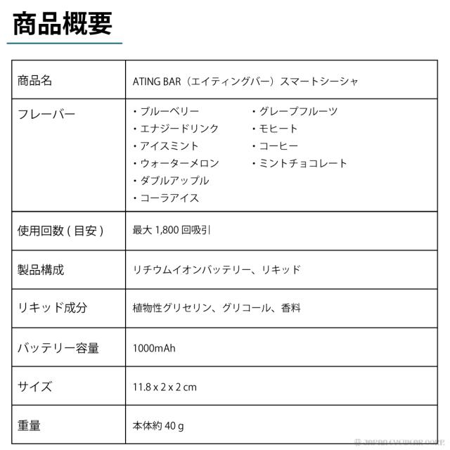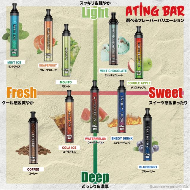 電子タバコ 使い捨て シーシャ 持ち運び ATING BAR エイティングバー 禁煙 ノンニコチン ニコチンフリー スマートシーシャ エナジードリンク フレーバー おしゃれ ノンタール 液漏れしない 長持ち