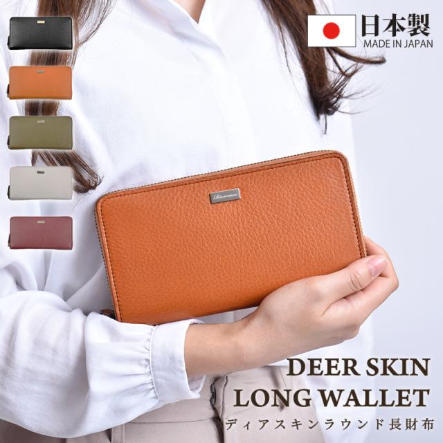 ディアスキン(鹿革) 本革 ラウンド 長財布