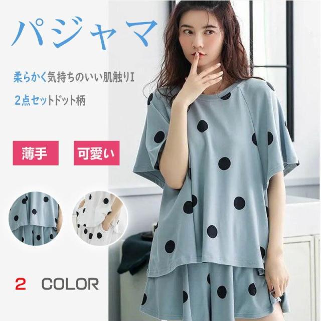 パジャマ レディース ルームウェア レディース 夏 パジャマ 女性 可愛い ルームウェア レディース 部屋着 ドット柄 半袖 薄手 Tシャツ パンツ ハーフパンツ 上下セット セットアップ ゆったり 可愛い 女性 寝間着 セット 寝巻き 柔らか プレゼント カジュアル 韓国風