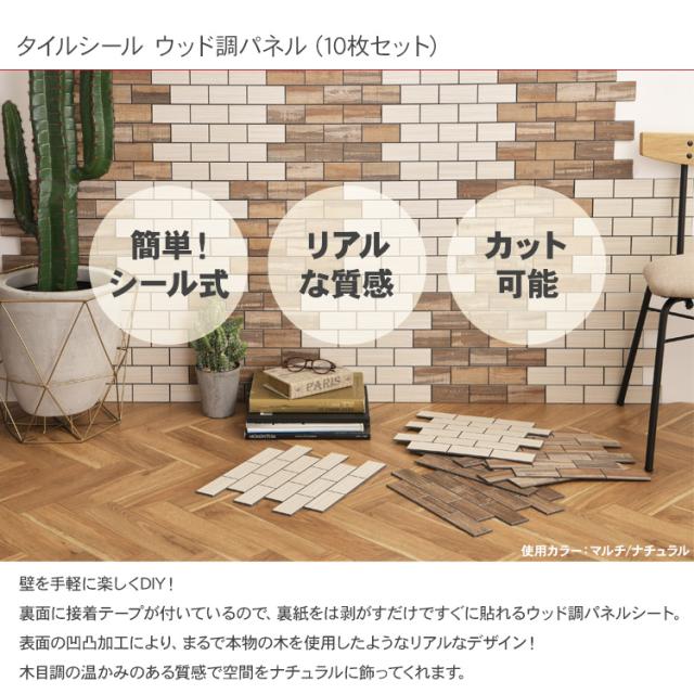 タイルシール ウッド調パネル (10枚セット) ACP-4801 ウッドパネル 壁 タイルシール キッチンタイル カフェ 店舗 インテリア キッチン リビング 寝室 玄関 木目調 ウッド調 ナチュラル DIY 室内 おしゃれ