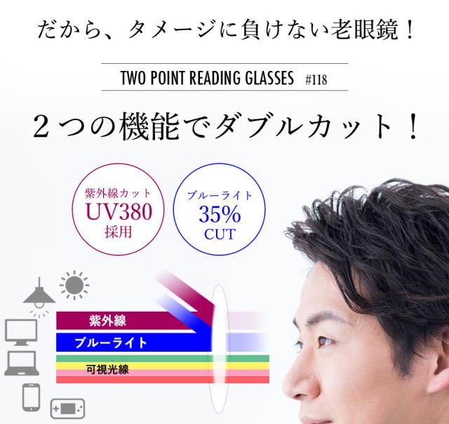送料無料 老眼鏡 シニアグラス ツーポイントモデル 117 全2色 リーディンググラス 男性用 女性用 ブルーライトカット35%