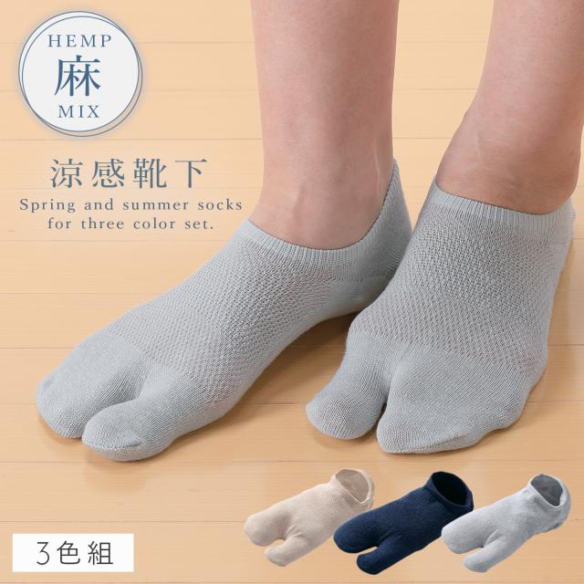 足袋ソックス 靴下 カバーソックス レディース 麻 夏用 涼しい 【3色組】 22-25cm 薄手 夏 メッシュ 蒸れない 通気性 【 快適な履き心地・夏靴下 】 まとめ買い 3足 セット 麻混薄手タビカバーソックス