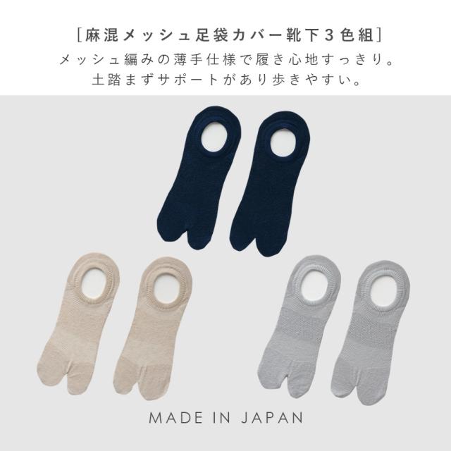 靴下 レディース 麻,靴下 レディース 夏用,靴下 セット レディース,靴下,くつした,くつ下,ソックス,婦人靴下,3足組,セット,まとめ買い,カバーソックス,足袋ソックス,足袋,タビ,たび,足袋靴下,メッシュ,メッシュ編み,麻混,麻,リネン,薄手,薄い,春夏,春,夏,夏用,暑い,季節,さらさら,サラサラ,サラっと,さらっとしている,さらり,サラリ,爽やか,さわやか,蒸れない,ムレない,蒸れにくい,ムレにくい,涼しい,涼しげ,通気性,風通し,風通しが良い,快適,履き心地,履き心地が良い,気持ちいい,肌触り,つま先,かかと,補強,丈夫,日本製,履き口,ゆったり,口ゴム,くちゴムゆるめ,よく伸びる,足首,ゆるい,ゆるめ,足のむくみ,むくみ,伸びる,動きやすい,履きやすい,締め付けない,しめつけない,締めつけない,締め付け感なし,跡が残らない,跡がつかない,脱げにくい,洗い替え,ネイビー,紺,ベージュ,グレー,22cm,22センチ,23cm,23センチ,24cm,24センチ,25cm,25センチ,22-25cm,大人,大人用,家族,ファミリー,お出かけ,外出,旅行,レディース,女性,女性用,婦人用