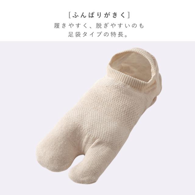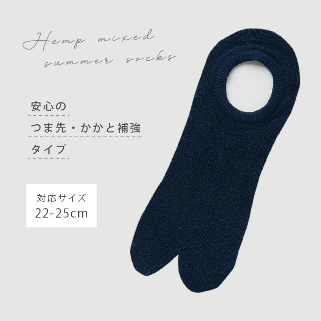 麻混(約12%)の風合いがさわやか!麻混+メッシュ編みの薄手仕様なので、履き心地すっきりのカバータイプ足袋ソックス。