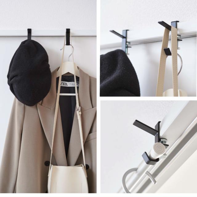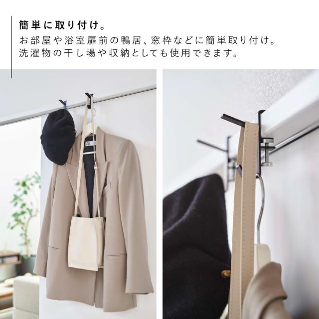 室内干しが足りない時に便利!簡単に取り付けができる物干しフック。お部屋や浴室扉前の鴨居、窓枠などに簡単取り付け。