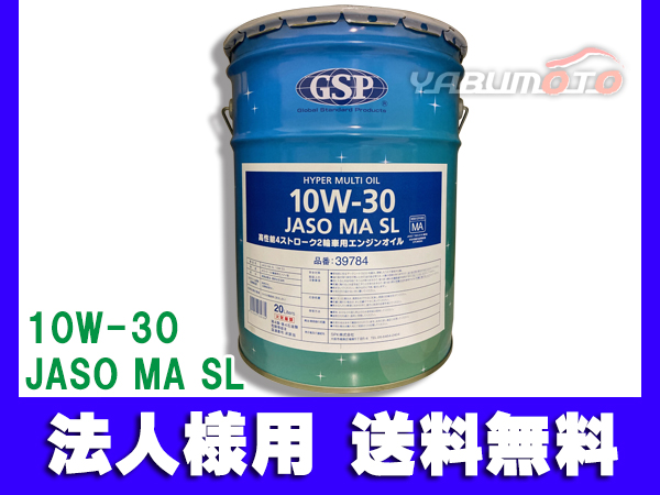 法人様宛て GSP エンジンオイル 高性能 4ストローク2輪車用 10W-30 SL JASO MA 20L ペール缶 39784 送料無料
