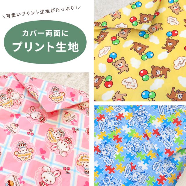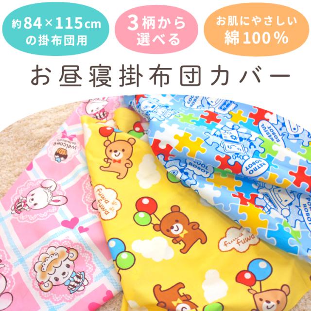 お昼寝掛布団カバー 90×120cm 綿100% くま ロボット うさぎ 黄色 青 ピンク 男の子 女の子 保育園 幼稚園 入園準備 洗い替え 掛け布団カバー お昼寝布団 掛けカバー ネームタグ メール便発送(ポスト投函) NP