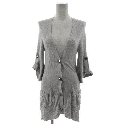 【中古】abahouse devinette Luxe カーディガン ニット ロング丈 七分袖 袖ロールアップ グレー