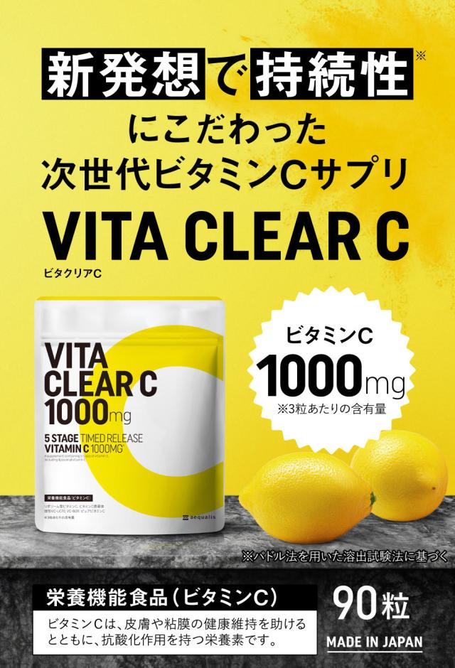 ビタミンC サプリ ビタクリアC リポソーム型ビタミンC配合 持続型処方 レモン50個分 美容 健康 ビタミンC誘導体 30日分 VC-LC70 VC-80R ピュアビタミン