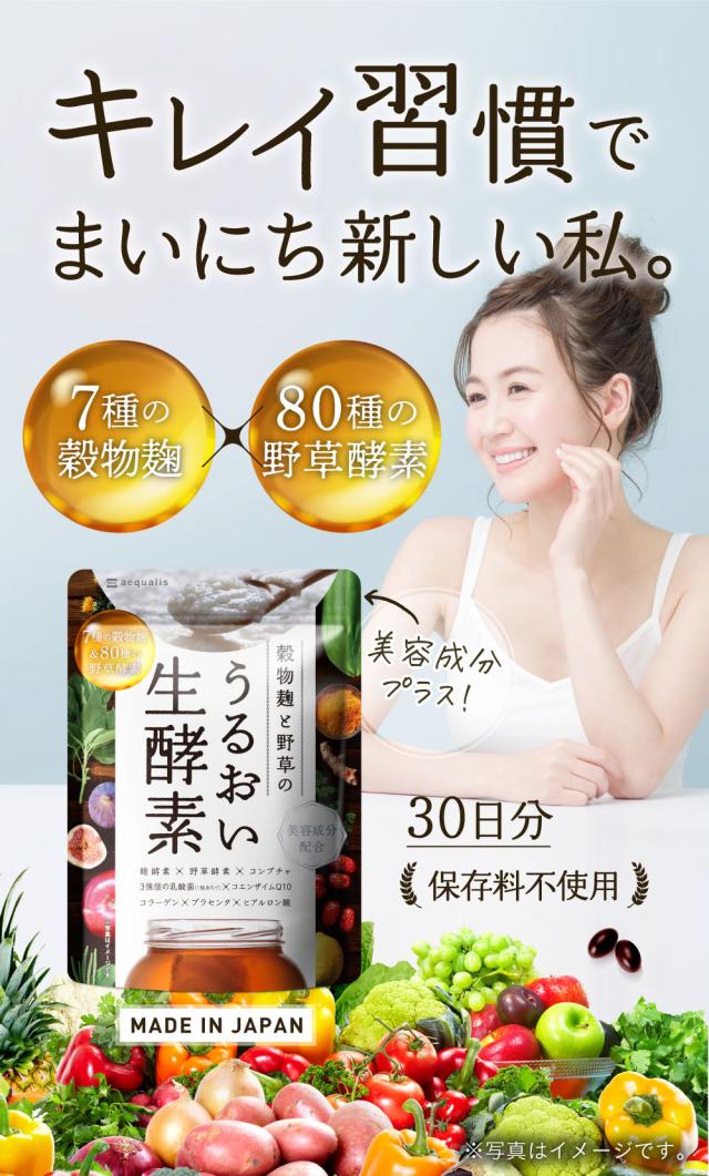 酵素 サプリメント 3億個乳酸菌 うるおい生酵素 コラーゲン ヒアルロン酸 コンブチャ 食物繊維 コエンザイムQ10 腸活 30日分 国内製造 送料無料
