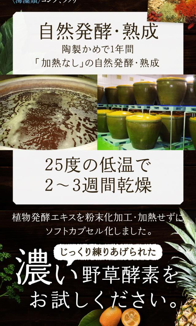 ■7種の穀物麹(大麦、あわ、ひえ、きび、タカキビ、紫黒米、米粉)を麹菌で発酵させ、酵素活性を維持したままぎゅぎゅっと凝縮。野草を中心に野菜・果物など80種類の自然素材を、約1年にわたり陶製のかめでじっくり発酵・熟成させています。