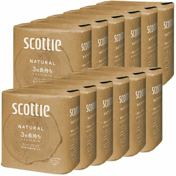 【12個セット】スコッティ ナチュラル トイレットペーパー 3倍長持ち4ロール 75m(ダブル) 無香料 スコッティ scottie ナチュラル 3倍 長持ち トイレットペーパー トイレットロール クラフト包装 脱プラ エコ 送料無料