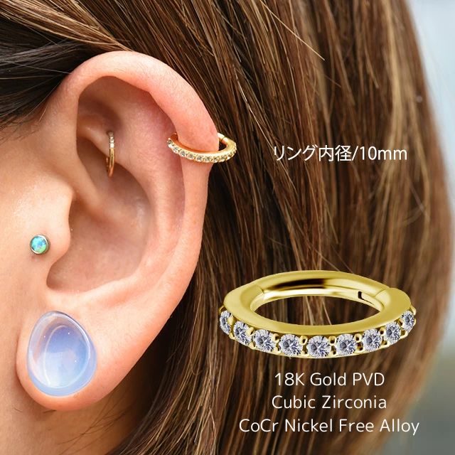 ロック ルーク へそピアス 18金ゴールドPVD 14G オーバル ラウンド ジルコン ノンニッケル ワンタッチピアス クリッカーピアス 軟骨ピアス ボディピアス