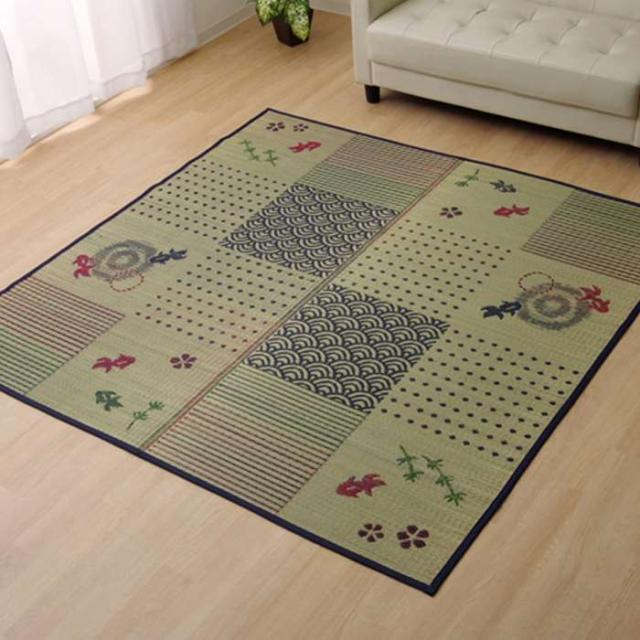 代引不可 い草ラグ DX金魚 ラグ カーペット 2畳 約176×176cm 正方形 和柄 風物詩 裏不織布 ござ IKEHIKO 8165300