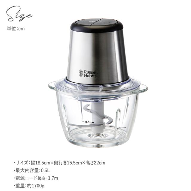 Russell Hobbs ラッセルホブス 4ブレードミニチョッパー フードプロセッサーフードチョッパー/コンパクト/おしゃれ/ガラス/フードカッター/みじん切り器/電動/離乳食 介護食/キッチン家電/