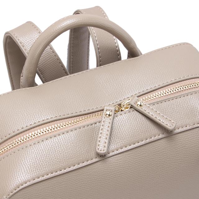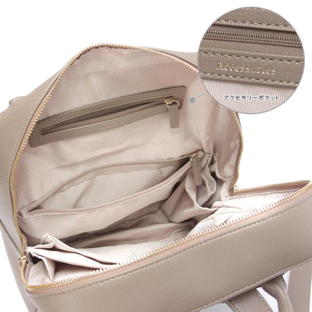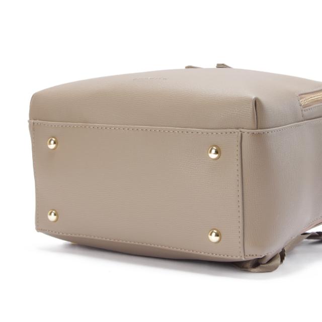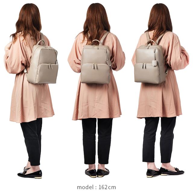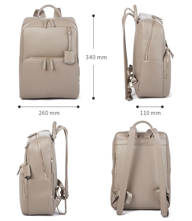 | どんなスタイルにも合わせやすく、使いやすさにもこだわった大人気のリュックシリーズの2022年モデル 【おすすめポイント】 ・オンにもオフにも使える小さめ(A4ジャスト)サイズ ・機能性に富んだ収納ポケットを多数搭載 ・お手入れのしやすい合皮素材 ・2021年に大人気だった、フレイヤリュックのアップデート 毎年大人気のお仕事・通学リュックが、より使いやすくアップデートしました。 メイン収納部分のポケットをファスナー付きに変更し、アクセサリーや小物収納に便利になりました。 本体のチャームを、シルバープレートに変更し、鏡として前髪や気になる部分のチェックにお使いいただけます。 四角いフォルムで、オフィススタイルからカジュアルスタイルまでどんなお洋服にも合いやすいデザインです。 内容物が下に落ちがちなリュックだからこそ、ポケットを充実させ、整理整頓のしやすさにこだわりました。 サイズは、A4ジャストサイズ。 13.3インチのモバイルPCの収納もぎりぎり可能なサイズ感です。 ※W310×H210×D10[mm]のPCで計測 メインファスナーは、引手がダブルの仕様です。 開けやすく、奥から手前に向けて開閉できるように設計されているので、中身が見えやすくなっています。 フロントポケットには、Dカンが付いています。 鍵や定期入れなど紛失したくないものを取り付けることができます。 ポケットは、背面に背負ったままアクセスできる、ファスナーポケットが1つ付いています。 フロントポケットは、べたポケットが2つ。今の時代欠かせない予備のマスクの収納に便利です。※抗菌加工などは施しておりません。 メイン収納部分には、PCやタブレットの収納に便利なマチ付きポケットが1つ(※ポケットサイズ:W220×H255×D30[mm]クッションなし)、べたポケットが2つ、ペットボトルフォルダーが1つ付いています。 上部には、ファスナー付きのアクセサリーポケットが1つ、下部には、小物収納に便利になファスナー付きポケットが4つ付いています。 本体素材は合皮を使用しているので、お手入れもしやすくなっています。雨など水にぬれた際は柔らかい布でさっとふき取ってください。 |