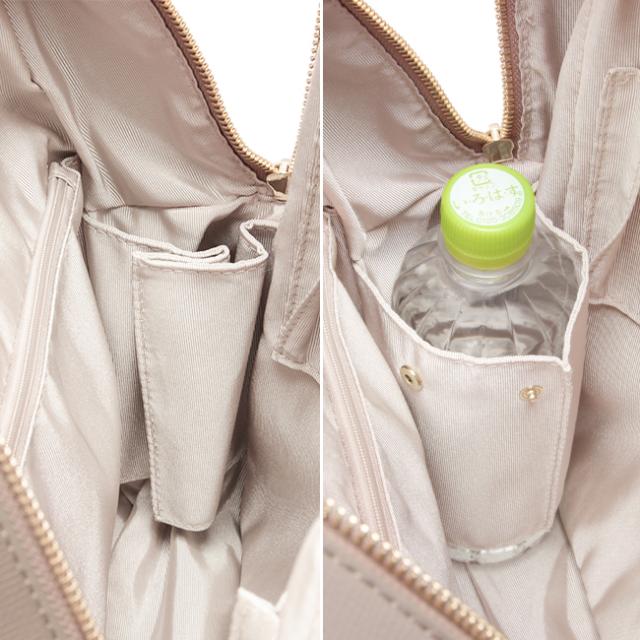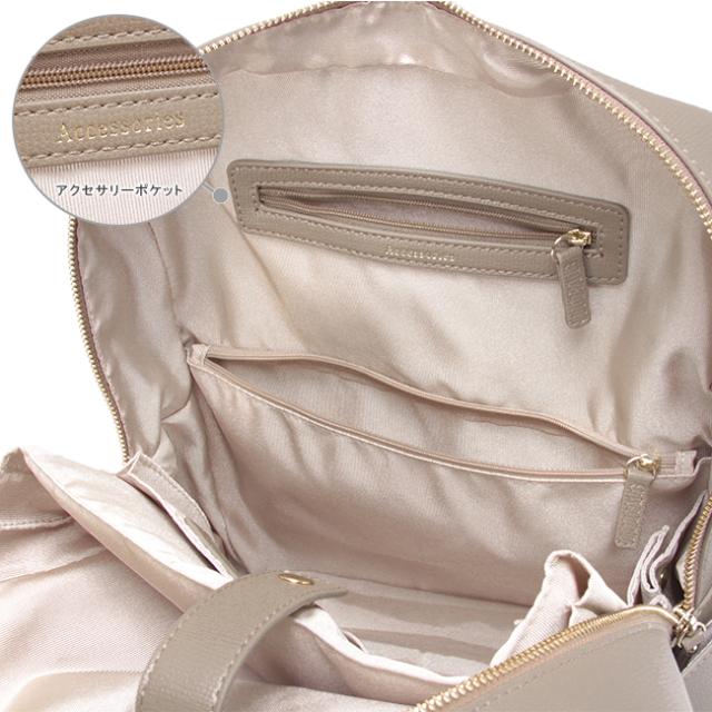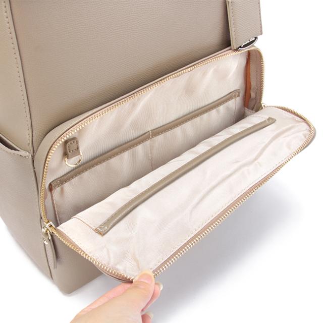| どんなスタイルにも合わせやすく、使いやすさにもこだわった大人気のリュックシリーズの2022年モデル 【おすすめポイント】 ・余裕をもってA4サイズを収納できるサイズ感 ・機能性に富んだ収納ポケットを多数搭載 ・お手入れのしやすい合皮素材 ・2021年に大人気だった、フレイヤリュックのアップデート ・荷物や書類の持ち歩きが多い方、またリモートワークなどでPCの持ち歩きが増えた方にもおすすめ 毎年大人気のお仕事・通学リュックが、より使いやすくアップデートしました。 メイン収納部分のポケットをファスナー付きに変更し、アクセサリーや小物収納に便利になりました。 本体のチャームを、シルバープレートに変更し、鏡として前髪や気になる部分のチェックにお使いいただけます。 四角いフォルムで、オフィススタイルからカジュアルスタイルまでどんなお洋服にも合いやすいデザインです。 内容物が下に落ちがちなリュックだからこそ、ポケットを充実させて整理整頓しやすくこだわりました。 普段から荷物量が多い方や、書類の持ち歩きが多い方、またリモートワークなどでPCの持ち歩きが増えた方にもにおすすめのアイテムです。 大きさは、余裕をもってA4サイズやファイルを収納できるサイズ。 13.3インチのPCも収納可能です。 ※W310×H210×D10[mm]のPCで計測 メインファスナーは、引手がダブルの仕様です。 開けやすく、奥から手前に向けて開閉できるように設計されているので、中身が見えやすくなっています。 フロントポケットには、Dカンが付いています。 鍵や定期入れなど紛失したくないものを取り付けることができます。 ポケットは、背面に背負ったままアクセスできる、ファスナーポケットが1つ付いています。 フロントポケットは、べたポケットが2つ。今の時代欠かせない予備のマスクの収納に便利です。※抗菌加工などは施しておりません。 メイン収納部分には、PCやタブレットの収納に便利な、クッション入りマチ付きポケットが1つ(※ポケットサイズ:W250×H280×D40[mm])、べたポケットが2つ、ペットボトルホルダーが1つ付いています。 上部には、ファスナー付きのアクセサリーポケットが1つ、下部には、小物収納に便利になファスナー付きポケットが1つ付いています。 本体素材は合皮を使用しているので、お手入れもしやすくなっています。雨など水にぬれた際は柔らかい布でさっとふき取ってください。 |