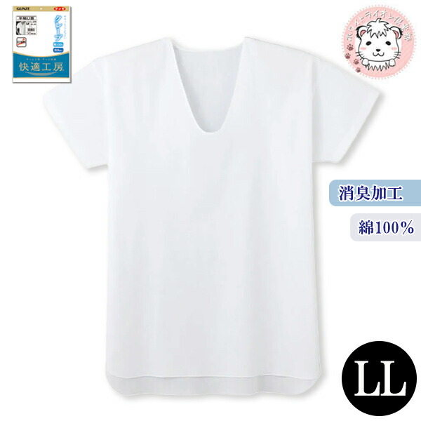グンゼ 快適工房 半袖 U首 クレープ 消臭 綿100% LL | 春夏 無地 メンズ 綿 下着 肌着 インナー KQ6516 GUNZE