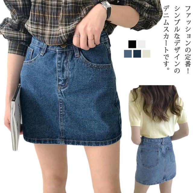 デニムスカート ハイウエスト カジュアル レディース ボトムス ショートスカート ミニスカート Aライン 無地 美脚 着痩せ 夏物 キレイめ お洒落