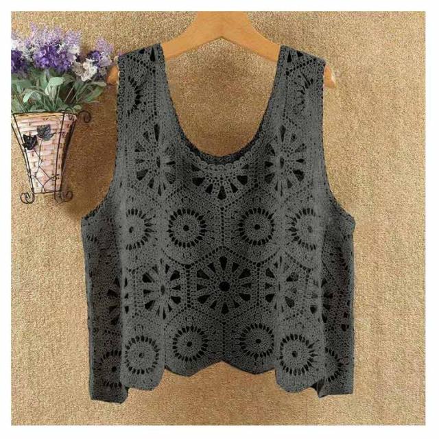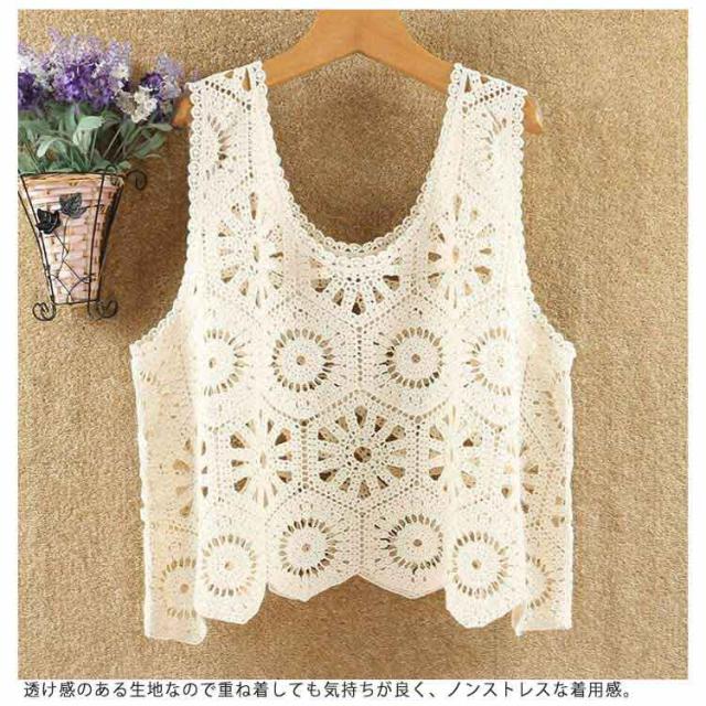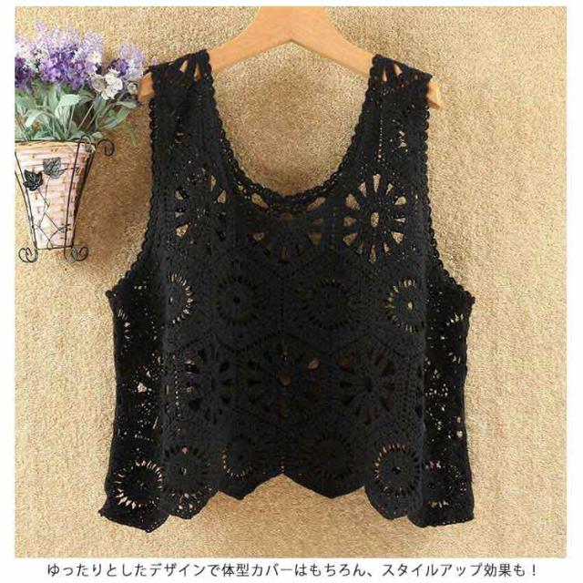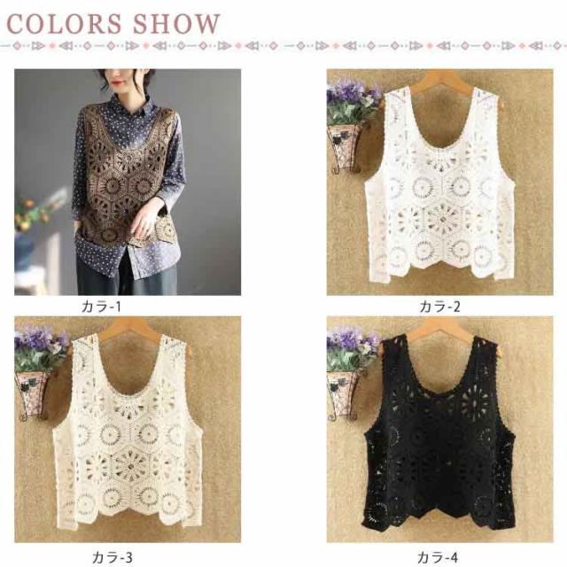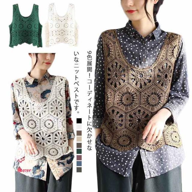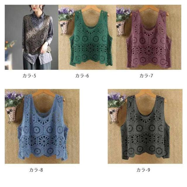 ニットベスト レディース ノースリーブ ベスト サマーニット トップス プルーオーバー 透かし彫り 無地 ゆったり きれいめ 春夏 お洒落 レイヤード風