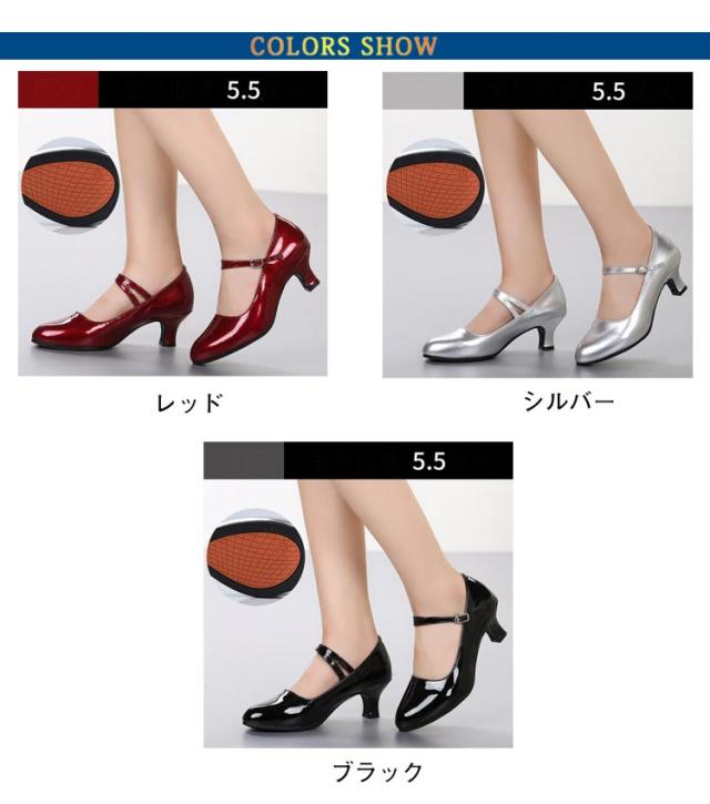 ダンスシューズ ジャズ ヒール レディース 5.5cm サンダル ダンスシューズ ヒール ラテン シューズ 社交ダンスシューズ タンゴ ジャズ 美脚ヒール ブラック シルバー レッド