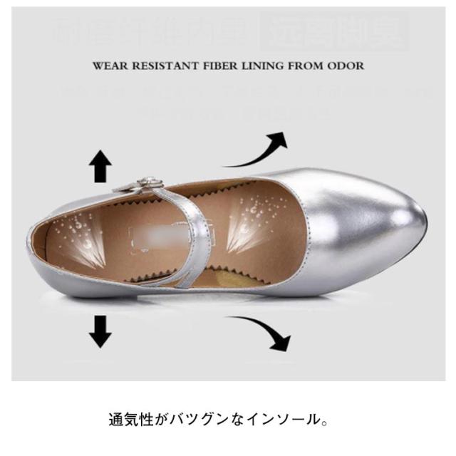 | 軽量で立派なダンスシューズ。 ピカピカなフェイクレザー素材アッパー。 通気性がバツグンなインソール。 ソールの耐摩耗性が他社より良い。 | |
