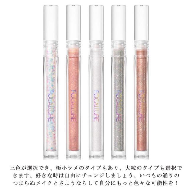 | 【軽やかなテクスチャー・展開しやすい】液体が軽くてベタベタもしないし、二重にたまることもなく、瞼に負担が少ないです。付属ブラシがラメの量をちょうど良く取れて故に指で簡単に馴染ませることができ、毎日メイクに長い時間を掛けるのをやめて素早く毎日メイクを完成してみましょう! 【塗って速く乾く・落ちにくい】速く乾く、瞼にくっつく瞬きをしてもナメが移りにくいです。長持ちで女子会でもデートでも頻繁にメイク直しが不要。お出掛けには必須なアイテムです。落ちにくくてもクレンジングで簡単に落とせます。 【華やかな偏光ラメ】繊細な多色偏光ラメが入っていて、日光や室内光等の光線で毎角度ギラギラとしたラメがつまらないと感じてしまうアイメイクを違う色に輝かせます。透明度が高いので涙袋に少しつけて可憐な濡れ感を楽しめます。トレントの涙袋メイクはそう簡単に完成してしまいます。 【万能に使えるアイテム】アイメイクに使うだけではなく、ハイライトとして元のハイライトの上に重塗りしても特別なポイントになりますので多様な使い方が楽しめます。 【アイメイクを強調しよう】三色が選択でき、極小ラメのタイプもあり、大粒のタイプも選択できます。好きな時は自由にチェンジしましょう。いつもの通りのつまらぬメイクとさようならして自分にもっと色々な可能性を! | |
