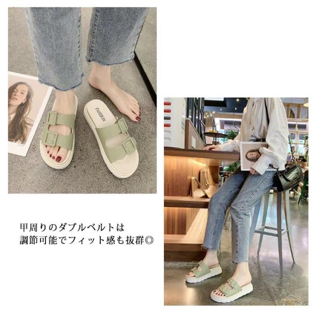 サンダル レディース 厚底 スポーツサンダル ベルトサンダル ダブルベルト ぺたんこ ストラップ 靴 シューズ クッション 4.5cm ヒール 歩きやすい 履きやすい 疲れない 痛くない コンフォートサンダル 軽量 スリッパ スポサン シューズ ビーチサンダル カジュアル 春夏