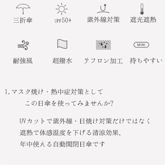 | タイプ | おしゃれ 日傘 レディース 100% 完全遮光 折りたたみ傘 晴雨兼用 自動開閉 UVカット 軽量 折り畳み 日傘 紫外線対策 耐風傘 母の日 雨傘 かさ マリン 通学旅行 | |