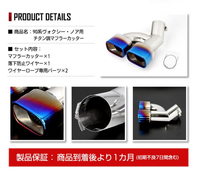 90系 ヴォクシー ノア用 チタン調マフラーカッター タイプ2 二本出し