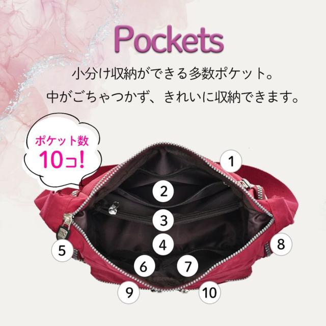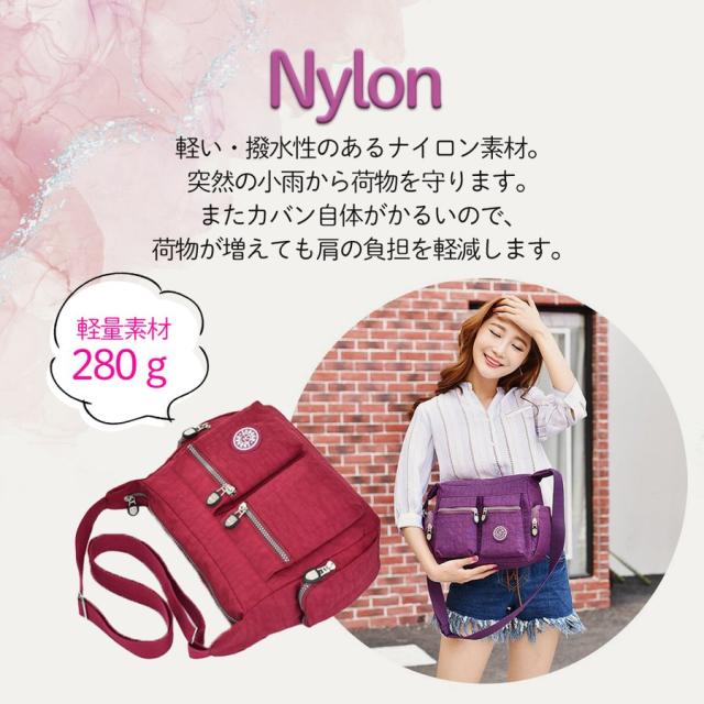 ショルダーバッグ ミニショルダー レディース 軽い 斜めがけ ナイロン ポケット 多い ファスナー 多収納 撥水 通勤 通学 鞄