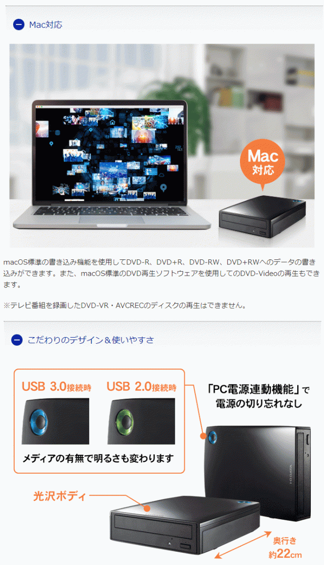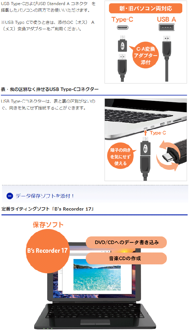 | Type-C対応 外付型DVDドライブ DVR-UC24 スペック情報 | |