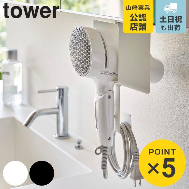 tower 山崎実業 ドライヤーホルダー 棚下ドライヤーホルダー タワー ( タワーシリーズ ドライヤー置き 戸棚下収納 ドライヤーハンガー ドライヤー収納 ドライヤースタンド 山崎実業 tower)