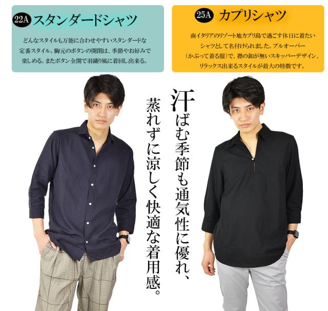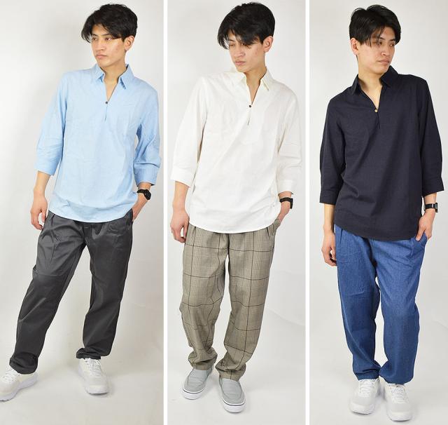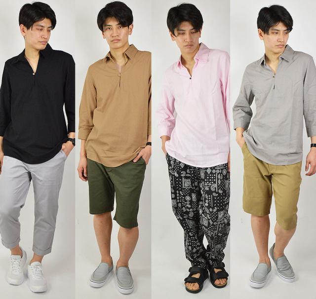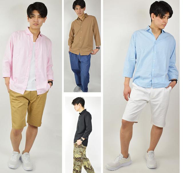 汗ばむ季節に涼しく着れる♪ デザインが選べる 七分袖シャツ