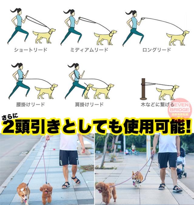 犬 多機能 ショルダーリード 肩掛けリード 2頭引き リード リフレクター 反射機能 ダブルリード 多頭飼い 小型犬 中型犬 大型犬 h0419