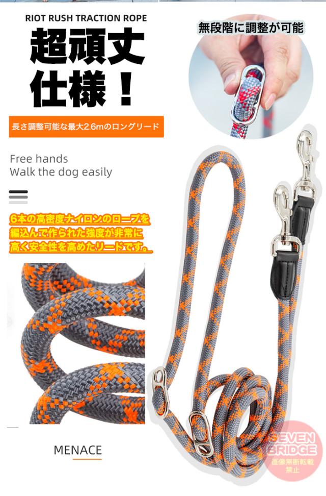 電話したりお子様と手を繋ぐ、おトイレ処理などハンズフリーでストレス無く快適に使用が出来る優れもの♪ また、用途によって多様に使えるので様々な場面で活躍します。2頭引きとしても使用可能! 6本の高密度ナイロンのロープを編込んで作られた強度が非常に高く安全性を高めたリードで、 光りを反射する素材もリード全体に編み込まれているので夜間などの暗闇での散歩でも、安全性を確保できる高品質タイプとなります。 リードのフック部分には耐久性抜群の合金素材を採用。またフックは360°回転するのでリードの絡まりを防げます。 ■素材:ナイロン ■参考サイズ表 ・S:リード太さ0.8cm 耐体重:〜10kg ・M:リード太さ1cm 耐体重:〜20kg ・L:リード太さ1.2cm 耐体重:〜80kg ・リード長さ:全サイズ最長2.6m ※調整可能 ■カラー:オレンジ / レッド / ブルー / グレー ※サイズ表記に付きましては、あくまで目安とさせて頂きます。 ※パソコンのモニター設定などにより多少、色の違いが出てくる場合がございます。 【検索ワード】 犬 犬のリード 男の子 女の子 犬用 中型犬 小型犬 ペット dog 春 夏 秋 冬 服 ペット用 ドック用品 お散歩アイテム 散歩 お出かけ アイテム グッズ ドッグリード 頑丈 丈夫 二頭 一頭 二頭飼い ドッグ 腰巻 リーシュ カラフル オシャレ お洒落 可愛い かわいい |