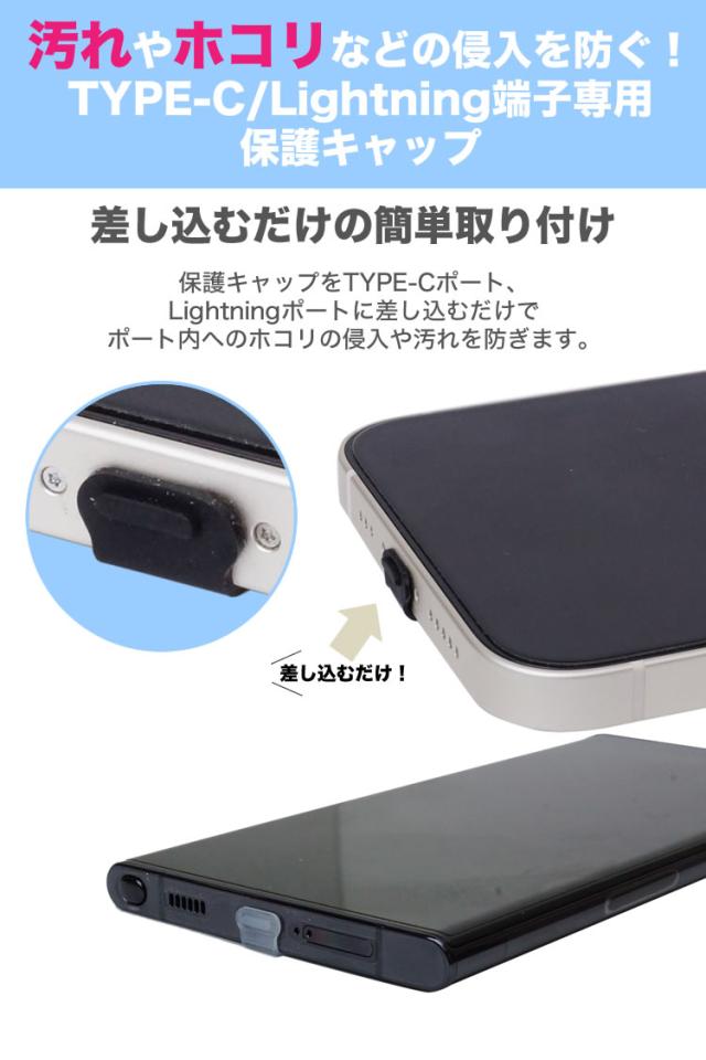 保護キャップをTYPE-Cポート、Lightningポートに差し込むだけで