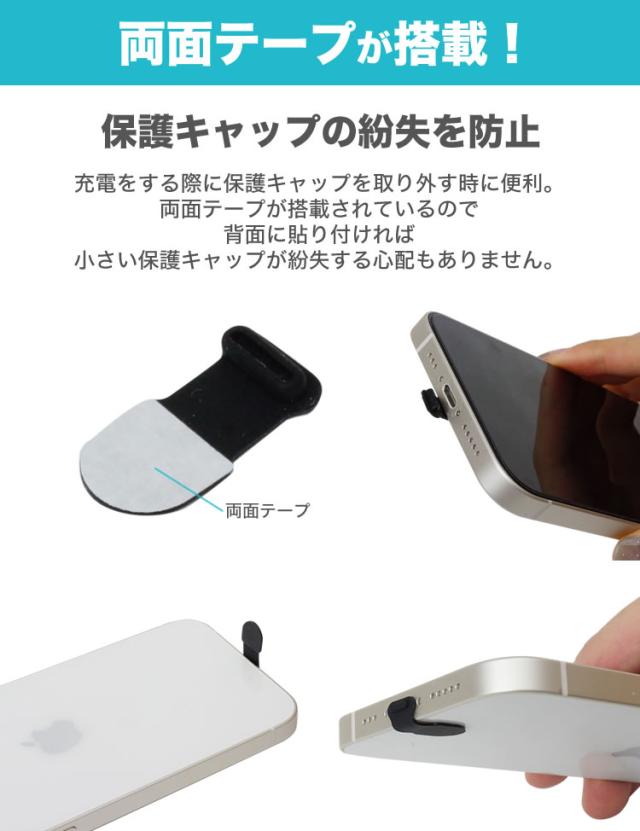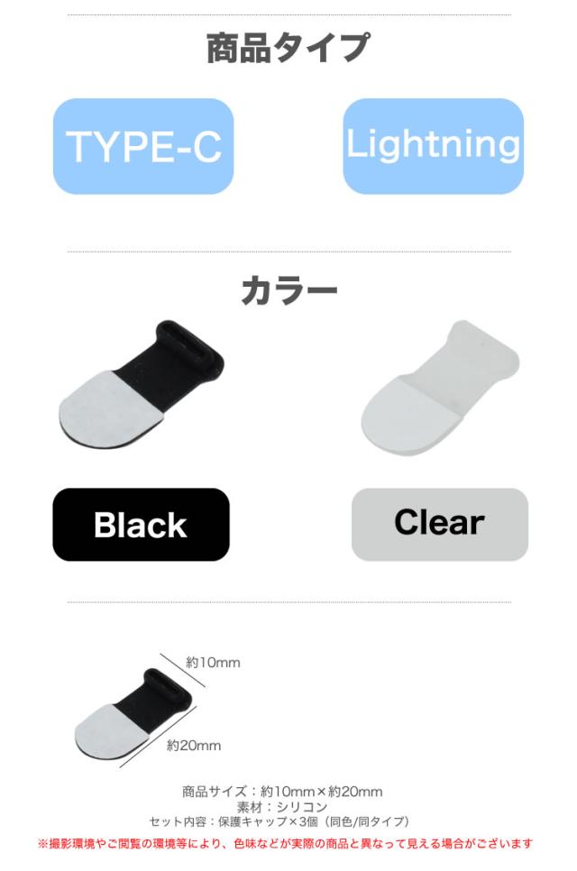 端子 専用 保護 キャップ Lightning TYPE-C 両面テープ搭載 保護キャップ ライトニングポート TYPE-Cポート 端子キャップ 3個セット