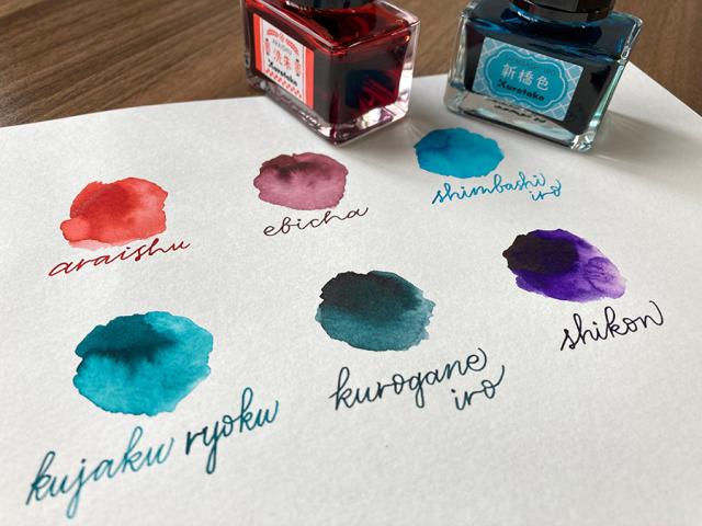 「明治のいろ」インクは、その名からイメージいただける通り明治の時代に思いを馳せた、その時代に流行した色をイメージしたカラーインク。